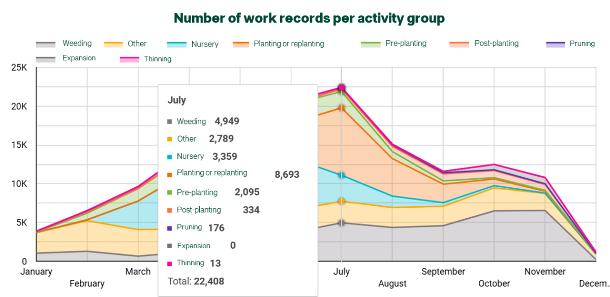 Our engineering teams are developing an AI recommendation engine that will evolve into a push tool that tells teams what action to take and when, ensuring interventions happen at exactly the right moment. By drawing on 15 years of restoration data, silviculture timelines, environmental patterns, and remote sensing datasets, it will help keep every parcel on track from the very beginning.